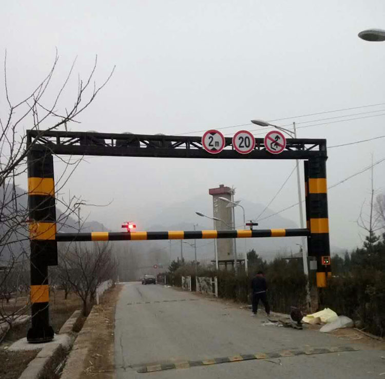 固定一體限高架主要用于橋梁、涵洞、隧道入口處的門型構(gòu)架,一般為鋼結(jié)構(gòu)焊接而成,起防護橋梁、涵洞、隧道的作用;上有標(biāo)志牌,標(biāo)有限高米數(shù),用于提示車輛。設(shè)置原則:限高架位置一般是一個車長,也就是此涵洞設(shè)計通過的最大車輛的一個車長,寬度與涵洞同寬(一般來說寬度不會造成事故,有多的),限制高度一般是涵洞凈高-20cm(但也不能完全保證車輛通過限高架就不會在涵洞內(nèi)出事,比如貨物松動了、地面不平車輛蹦起來了等等。