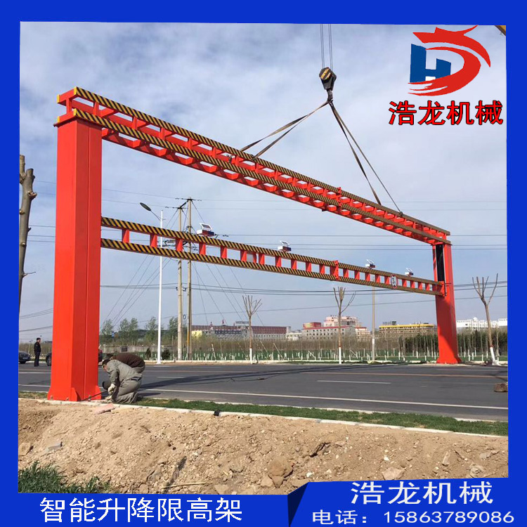 首先復(fù)核智能升降限高架的混凝土基礎(chǔ)的軸線及基礎(chǔ)頂面標(biāo)高,采用分件吊裝的方法,先吊裝所有鋼柱,待校正固定后,依次吊裝框架鋼梁,隨吊隨調(diào)整,然后進(jìn)行安裝加固。限高架地基根據(jù)跨度高度來制定,不能小于要求值,如果基礎(chǔ)做不好,容易發(fā)生事故。